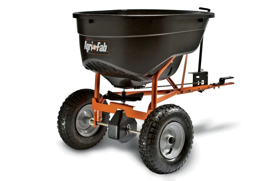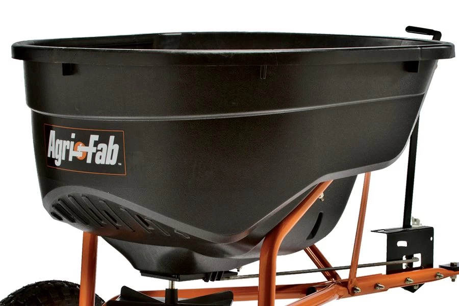 Equipped with an extra large 56kg / 130lb hopper, the highly durable Agri-Fab 45-0463 towed broadcast spreader has a coverage of 25,000 square feet in one fill (that’s around half an acre).