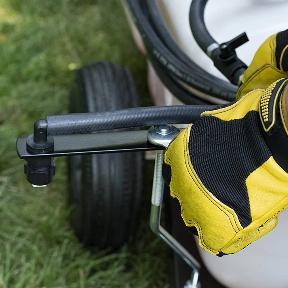 The tow-behind sprayer is equipped with a 60″ rear spray boom which delivers a stunning 228cm (90”) spray width. It also comes with check valves in the boom tips prevent siphoning and dripping which could lead to lawn spotting.