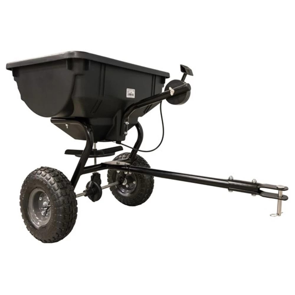 The Agri-Fab 45-0530 towed broadcast spreader is suitable for trailing behind most ride-on mowers and lawn tractors. The on/off control is easily accessible from the tractor seat for added convenience.