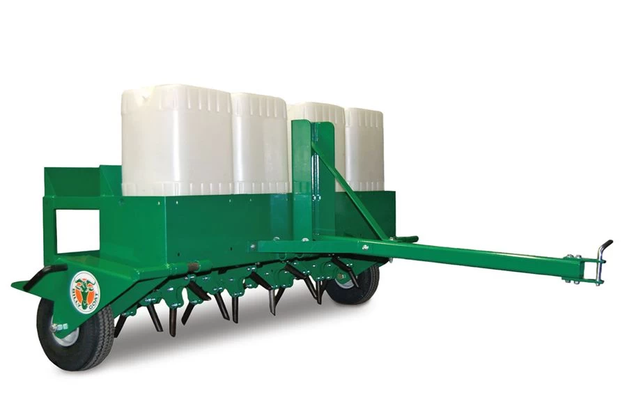 Optional water weight containers eliminate bulky steel weights and are positioned directly over the tines for improved aeration depth.