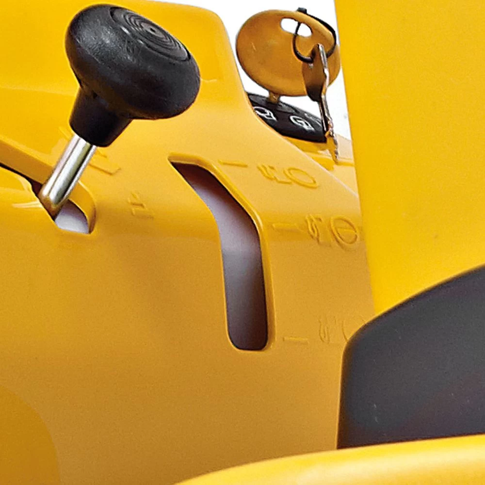 The tight turning circle of 46cm (18″) is smaller than most tractors which makes it ideal for mowing around obstacles such as trees and flowerbeds. Also important is the step-through chassis design, allowing very safe, easy mounting and dismounting.