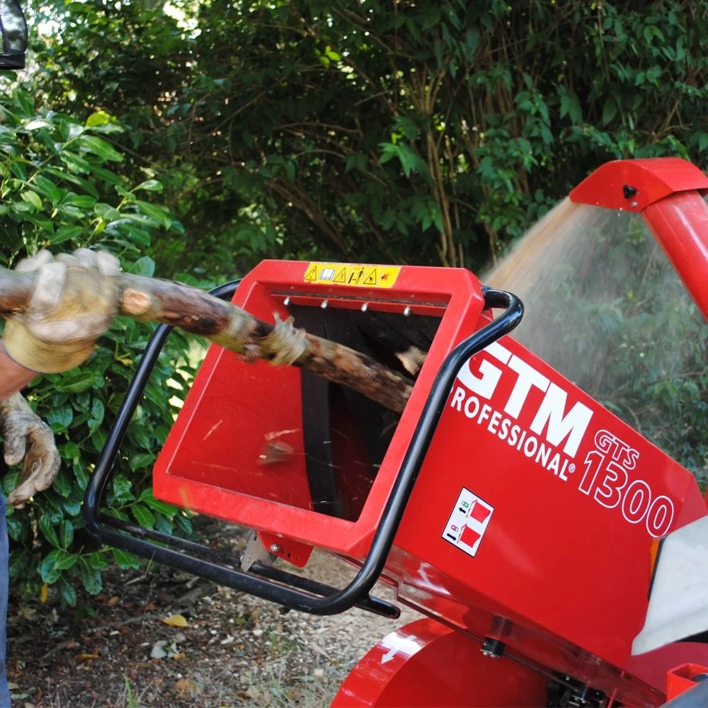 The GTS1300 PTO wood chipper from GTM Professional can be connected via the PTO to the PTO of all brands of tractors up to 45 hp (33kW) with Cat. 1 connection. The GTS1300 PTO is a powerful wood chipper with compact dimensions. The machine therefore fits in a van and on any trailer.