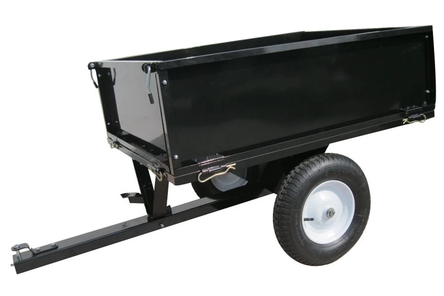 Pneumatic, grip-tread 13″ tyres provide superior manoeuvrability on rough terrain and ensure the unit runs smoothly across the ground. Supplied with a universal hitch pin, this Tondu dump cart offers superb value for money and can be used with any make of garden tractor.