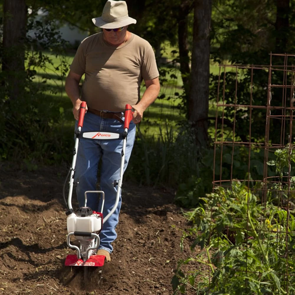 Digging and weeding becomes easier and more enjoyable to the Mantis Delux 4-stroke mini tiller.