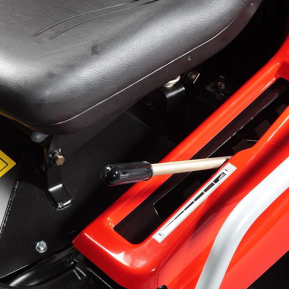 Powering this two-wheel drive machine is a beefy 570cc Briggs & Stratton Vanguard v-twin engine. This beast is easy to control and manoeuvre thanks to a host of features including electro-magnetically operated clutch, hydrostatic transmission and lockable differential enabling the machine to negotiate demanding conditions on any type of terrain. The large tyre footprint and low centre of gravity combine to give the machine maximum stability, even on steeper gradients or near banks and ditches. Cruise control enables you to keep the tractor speed constant throughout the job.