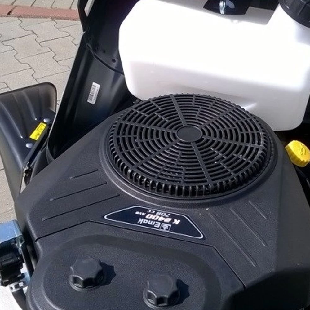 A super-powerful 708cc Emak K 2400 AVD twin-cylinder engine delivers all the power needed and features electric key start for consistently hassle-free starting. The smooth hydrostatic transmission operated with ergonomic foot pedals provides the best in control and manoeuvrability with speeds up to 9.0km/h in forward drive. The engine also benefits from Emak’s overhead valve technology for cleaner running and increased fuel efficiency.