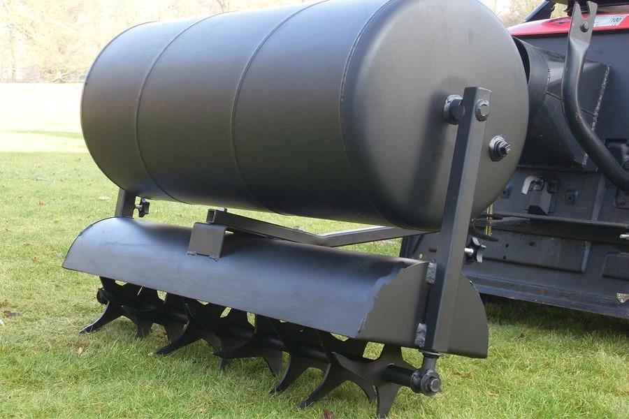 This attachment is designed to break down the surface pan of the grass to improve drainage and air penetration to the roots. The aerator is ideal for autumn and early spring use.