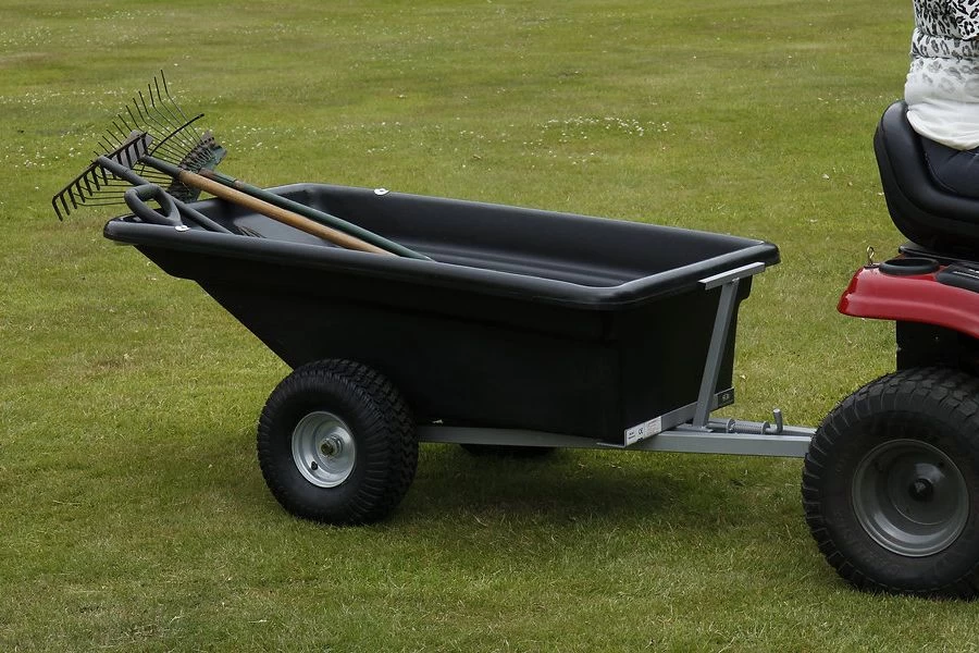 The trailer has a simple tipping mechanism for easy emptying. The two wide profile roller bearing pneumatic wheels help to reduce wheel marks on soft surfaces.