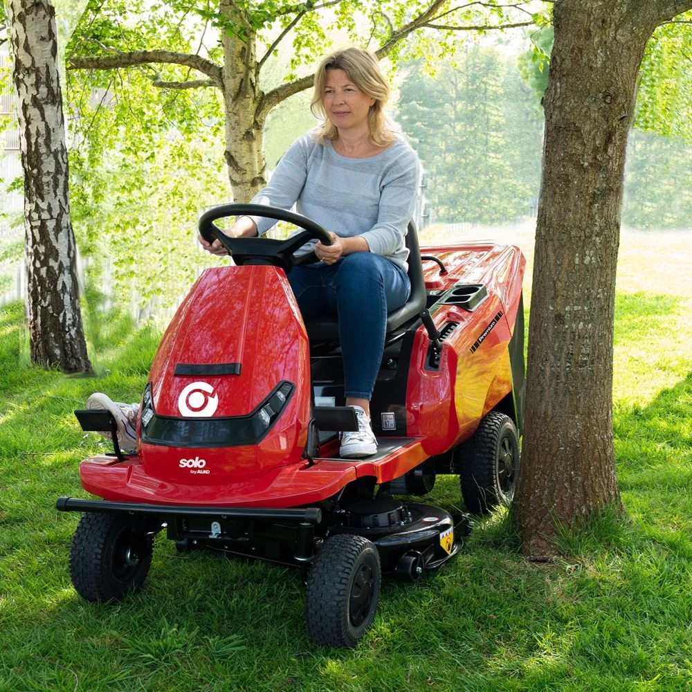 The first battery-powered ride-on lawn mower from solo by AL-KO is the environmentally-friendly Premium R 85.1 Li featuring variable e-drive and twin blade, steel mower deck.