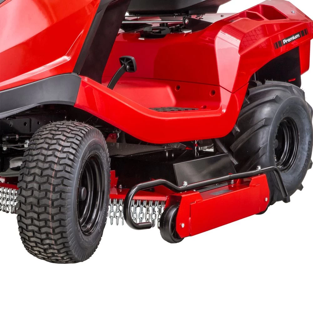 A key feature of the T22-110 HDH-A V2 is its large heavy-duty chevron tyres which provide optimum traction whilst working on uneven terrains. The three-bladed mower deck provides a 110cm cutting width, whilst the height of cut can quickly be adjusted in seven stages between heights of 30 – 90mm and features AL-KO’s innovative cutting height memory function. The ball-bearing, low-vibration mower deck is equipped with four contact rollers for compensation on uneven terrain.