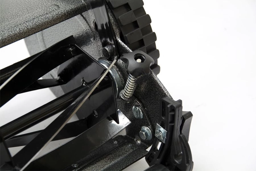 The cutting height can be adjusted from 17mm to 43mm to suit cutting conditions and the desired lawn finish. Grass clippings are collected in a rear fabric grass bag with 18 litre capacity.