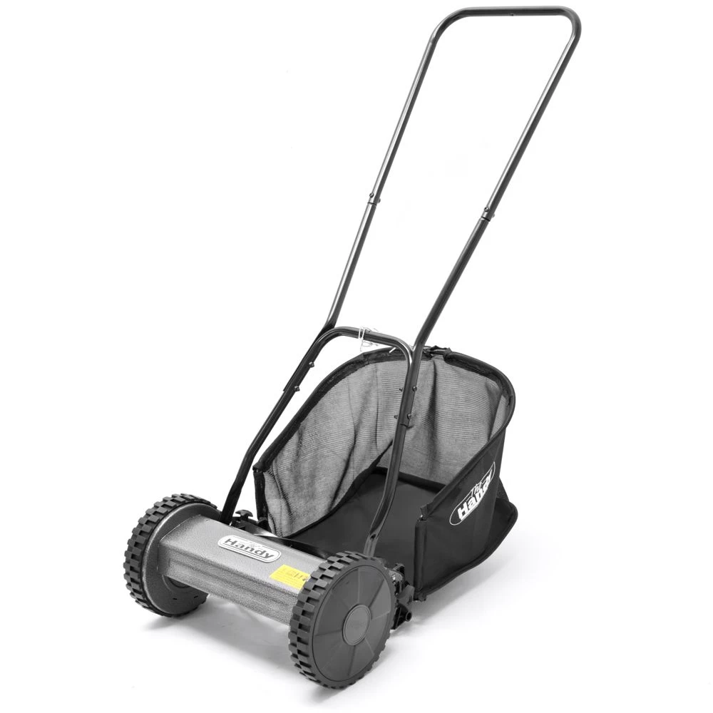 Relying on good old fashioned push power, The Handy eco-friendly hand-propelled lawn mower features a 30cm (12″) cutting width, ideal fo small areas of lawn. Equipped with a five-bladed cutting cylinder and plastic rear roller, this mower will leave a fine cut and striped finish.